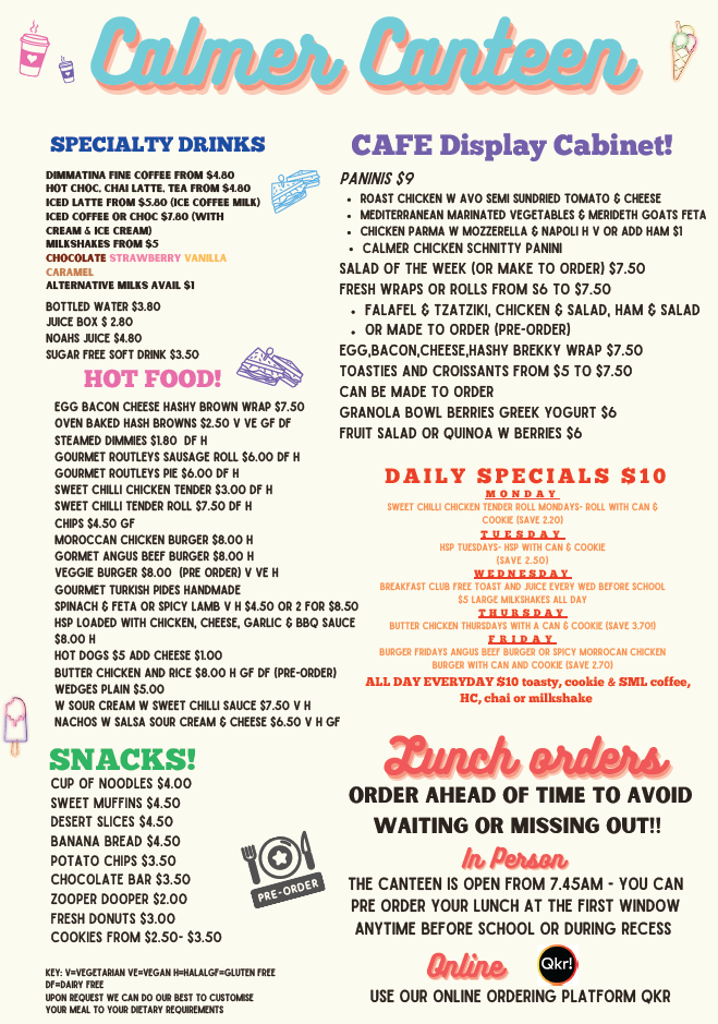 The Canteen can also take lunch orders in person if you have missed out on the QKR App cut-off time of 8.30am