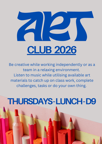 Come along to Art Club for a relaxed and creative space to hang out at lunchtime on Thursdays. 🎨