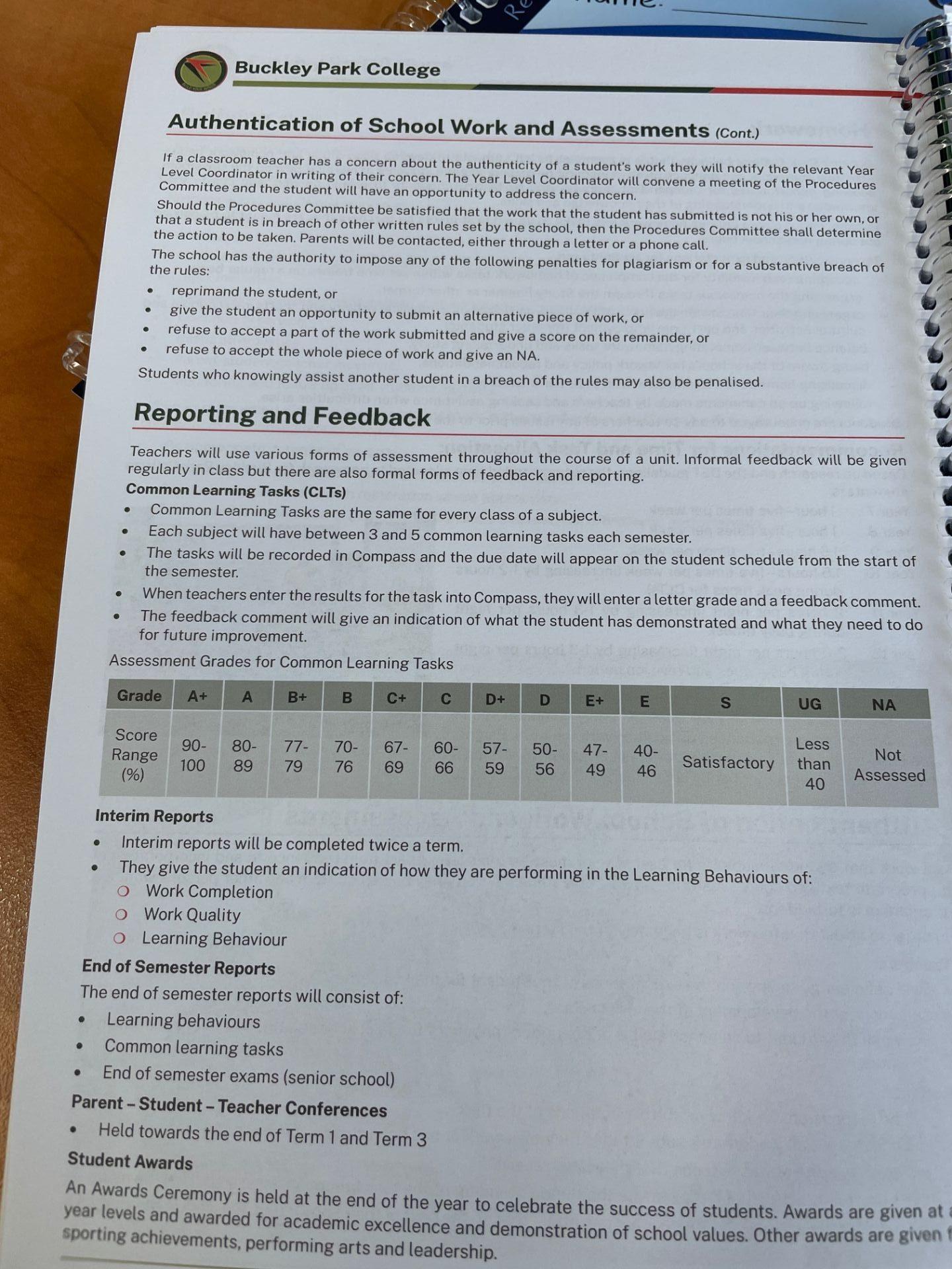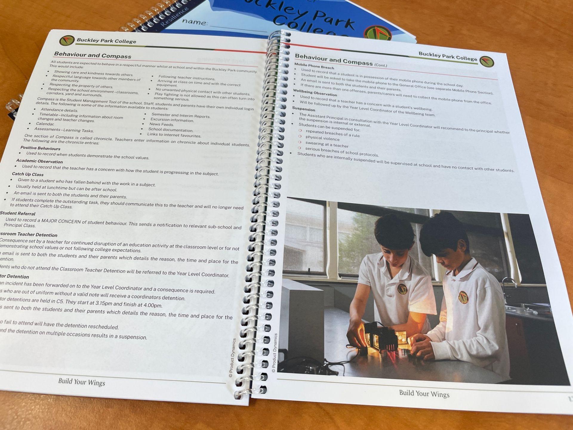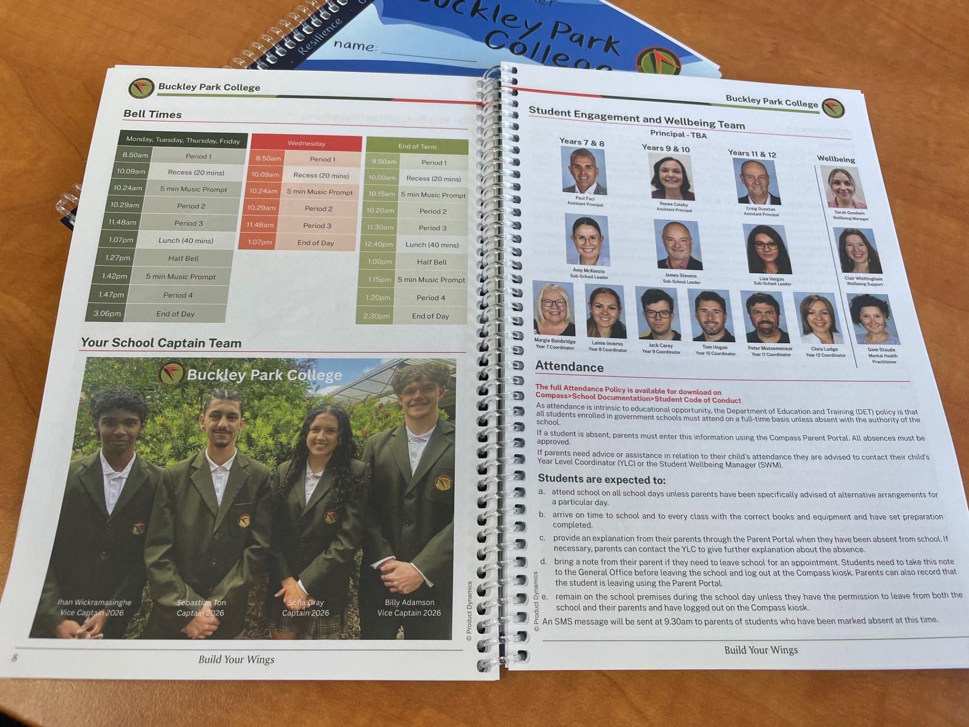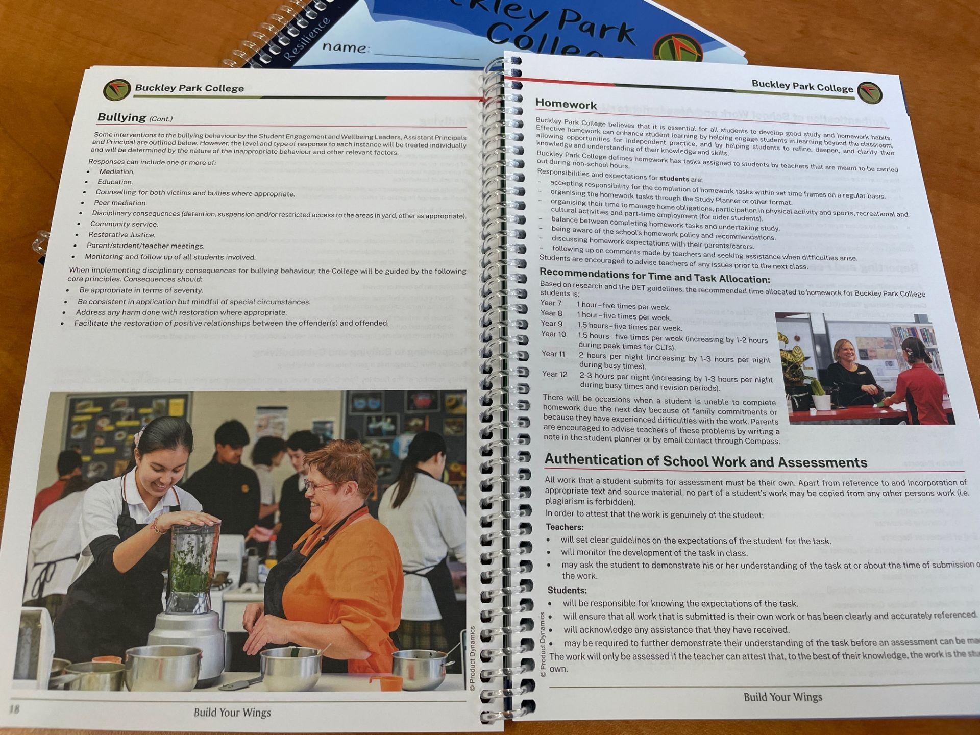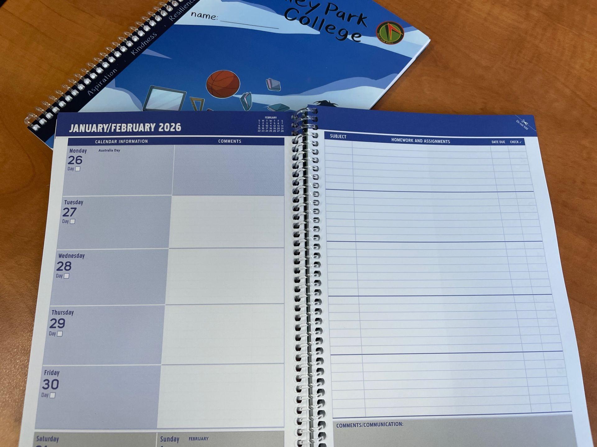 The advantage of our planners over generic ones from Office Works, they include all of our policies, helpful resources, extra-curricular information, clubs, wellbeing support and much more!