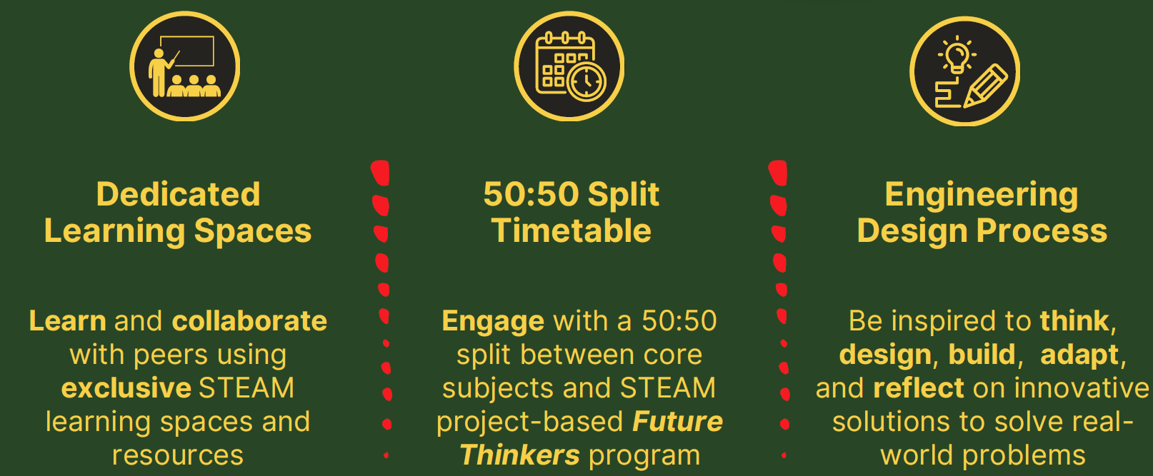 The STEAM Academy will have dedicated classes and resources where the focus for teaching will be on: